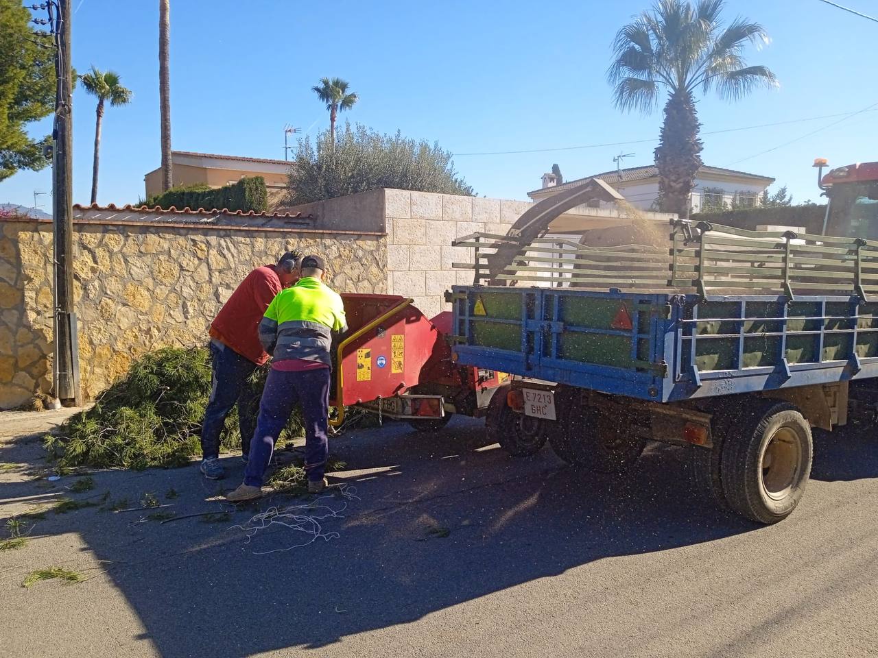 Además de la recogida habitual de verde, que tiene lugar los martes y jueves, se ha incorporado un servicio de trituradora para acelerar la limpieza y recuperar la normalidad de las calles lo antes posible. Estos trabajos de refuerzo los realizan las brigadas de medio ambiente y obras del consistorio.