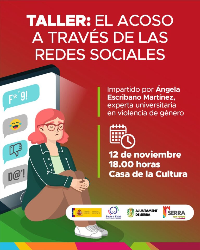 El próximo 12 de noviembre a las 18.00 horas, tendrá lugar el taller “El acoso a través de las redes sociales”, impartido por Ángela Escribano Martínez, experta universitaria en violencia de género 🗣️