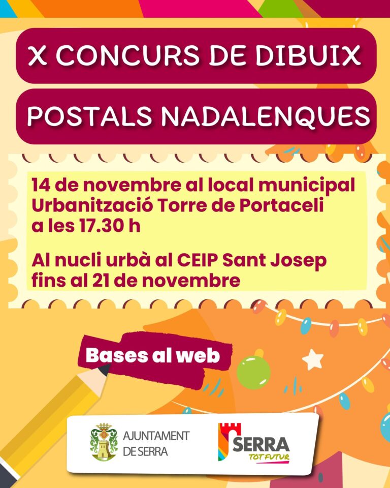A la Urbanització Torre de Portaceli la cita és 14 de novembre a les 17.30 h al local municipal. Al nucli urbà es realitzarà al CEIP Sant Josep fins al 21 de novembre ℹ️